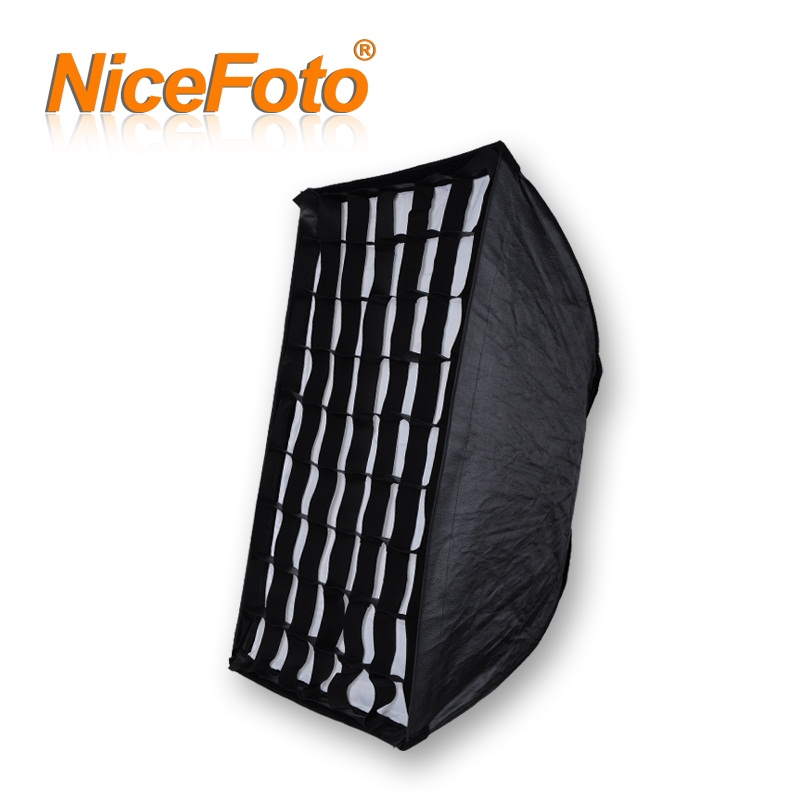 Nicefoto softbox montura Bowens cu o suprafata de 60 x 90 cm. Ideal pentru a difuza lumina data de blitzuri, pentru a evita umbrele dure si zonele supraexpuse in imagine. Este dotat cu o retea de fagure detasabila. Ideal pentru fotografiile de dimensiuni medii si mari pentru portrete, fotografie de nunta, moda si frumusete.